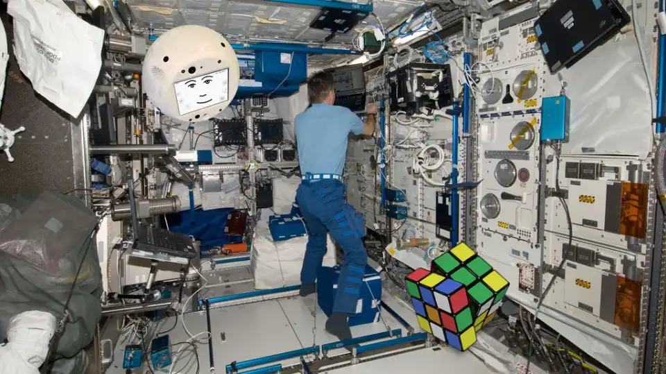 Astronauts can ask CIMON for instructions or information using everyday language, keeping their hands and minds free for other, more important things. The picture shows the first CIMON during an activity on the ISS involving a Rubik’s Cube.