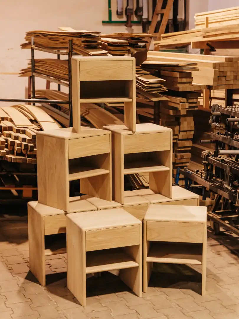 Made-to-order side tables awaiting shipping