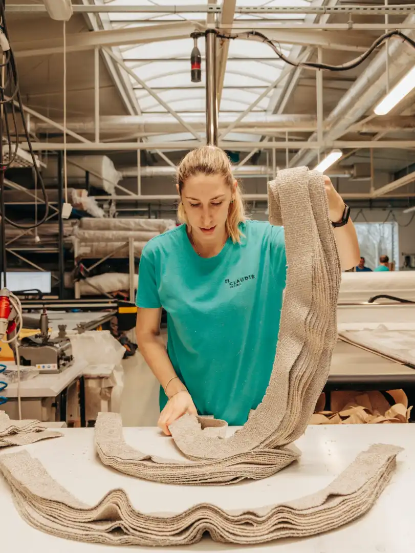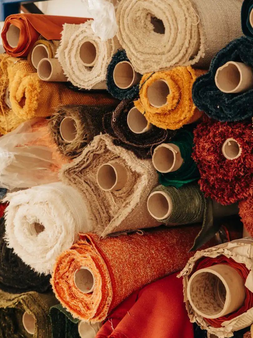 Rolls of textiles in Claudie Design’s factory