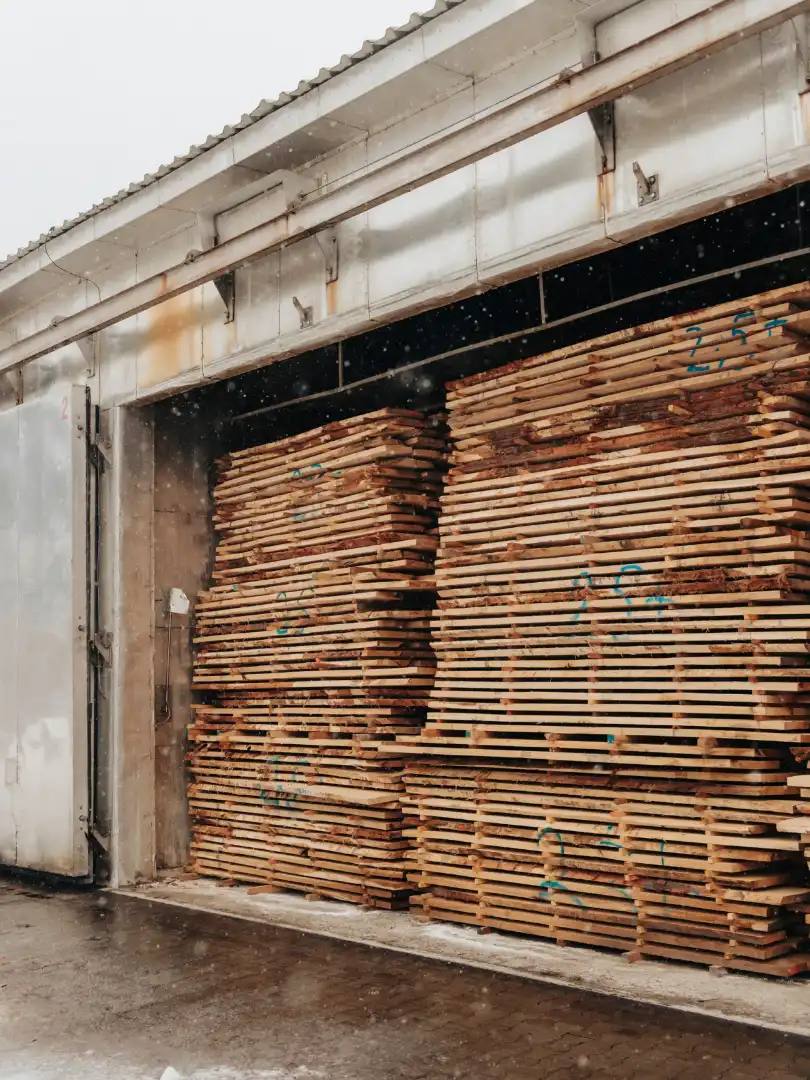 Processed wood in the sawmill’s drying chambers
