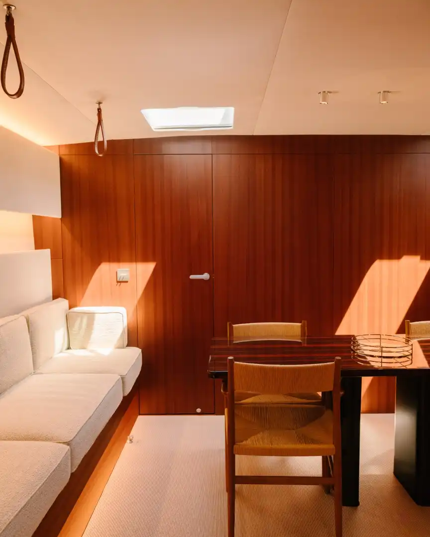 “We wanted to create a sense of relief for your eyes below deck. When you’re sailing across the Atlantic for three weeks, it’s extremely important that you have a space that helps you feel grounded and calm.”