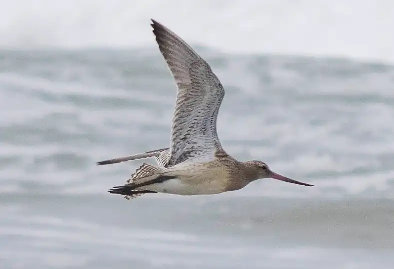 On September 16, 4BBRW left Alaska and flew for 11 days straight. He covered 7,581 miles (12,200 kilometers) before landing near Auckland, New Zealand. His high speed was 55 miles per hour (89 kilometers per hour). The bar-tailed godwit above isn’t 4BBRW.