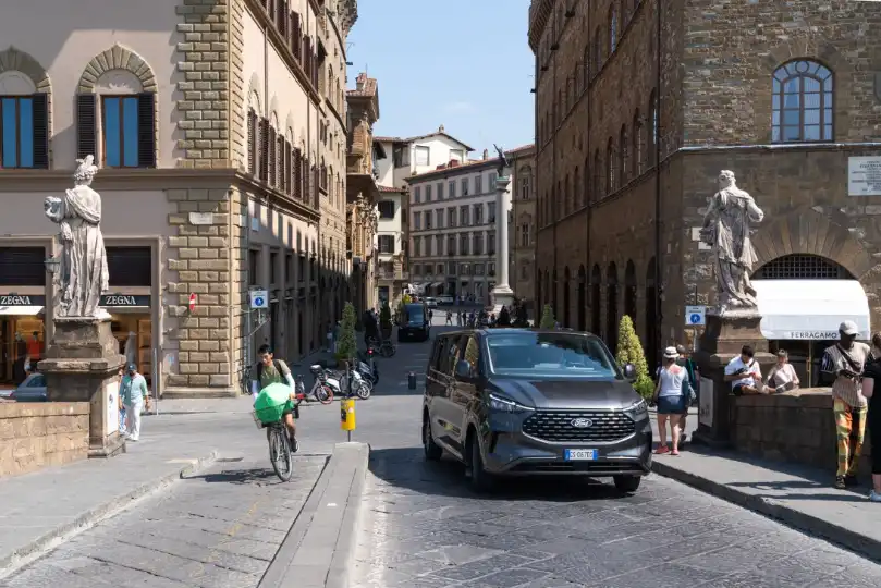 “It’s an elegant yet comfortable car to drive,” says Stefano Ciappi, who Monocle trails for a morning on the road in Florence, where he’s taking clients to the airport or between events in his newly minted Tourneo Custom. Ciappi, who runs chauffeur business Chianti Drive, which services central Tuscany, bought the vehicle earlier this summer. The driver’s preference for the US brand is unusual in a sector where the ubiquitous Mercedes Benz V-Class people-mover currently reigns supreme – but Ciappi says that’s likely to change. “The Tourneo Custom is going to be really popular in the chauffeur and taxi industry in Italy,” he says. “I already have several taxi-driver colleagues trying it. They’re satisfied with it because it’s comfortable for both the driver and the passengers. It’s absolutely on the way to being a success.”