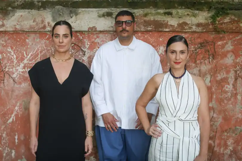 Maria Montero (on left), Yuri Olivera and Jaqueline Martins, part of the team running new gallery Martins&Montero