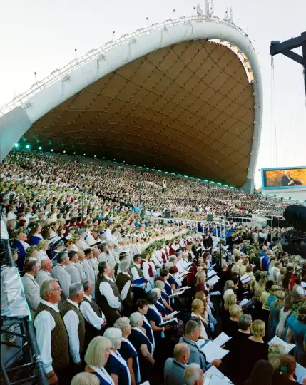 Some have reservations about elements of the Song Celebration, which are clearly designed to rouse the nation. “Too much is made of nationalism,” says Nerija Putinaite, associate professor at the Vilnius University Institute of Political Sciences. “The focus should be on civic, not ethnic identity.” Still, you would be hard-pressed to find anyone in the crowd, from cheering family members to someone who has travelled here from abroad, who isn’t overwhelmingly enthusiastic about the event, which has an atmosphere that often verges on the euphoric.