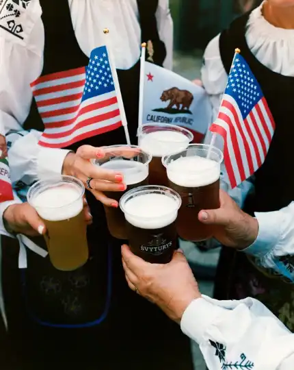 Monocle visits Vilnius Liepkalnis School, where more than 200 children and adults, mostly from Pasvalys, a city near the Latvian border, are either playing basketball outside, resting on green camp beds or reapplying make-up ahead of the evening’s celebrations. Ruta Jaruseviciene, from the municipality, shows us around. Remarkably, given the number of people temporarily living here, all is going smoothly, she says, even though six children came down with a mysterious vomiting bug the day before. Jaruseviciene offers us home-brew from several kegs in the makeshift bedrooms (the Pasvalys flag features a bull and hops in a nod to its beer tradition), while someone else is soon proffering a plate oflasiniai– seasoned and smoked pork served in slices. “I thought that the children would be tired after a full day,” says Jaruseviciene. “But they eat and then go wild!”