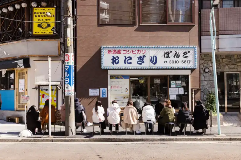Come rain or shine, there’s always a queue outside Onigiri Bongo, a renownedonigiri[rice ball] shop in Otsuka. At the weekend people have been known to wait for more than six hours. When Monocle visits, the queue is already taking shape at 08.45 – nearly three hours before opening time. The first to arrive get a stool. Everyone in the queue is served green tea and spirits are high.