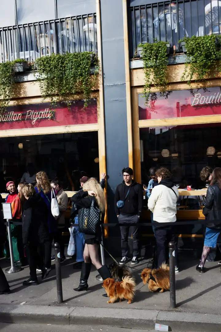 Everyone in the queue agrees, Bouillon Pigalle is perfect for an extended lunch with friends, perhaps with a carafe of wine, which here can range from a modestun quartto a supersize jeroboam; again, at prices that are hard to beat. “We are queueing because this place has theesprit bouillon[bouillon spirit],” adds Cécile Vassas. “There’s traditional French cuisine and a convivial brasserie atmosphere inside. And you can always order steak frites.” The consensus is: the queue might be long but once you make it through the door you will be rewarded tenfold.