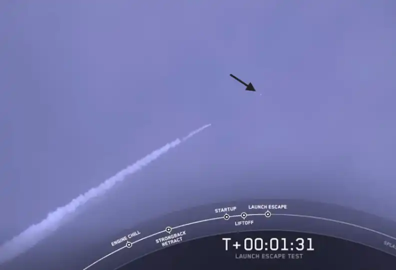 SpaceX, a company working to supply NASA with spacecraft, has successfully tested its emergency escape system. During the test, the capsule was safely carried away, while the main rocket exploded. This picture shows what the escape might look like from space.