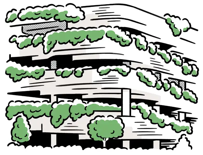 Studies have repeatedly shown that greenery can lower stress levels and improve general wellbeing; planting can also filter air and regulate building temperatures. Street-level trees and vertical gardens bring life to the façade (Singapore-based WOHA architects is an expert in this field), providing a cleaner microclimate for tenants.