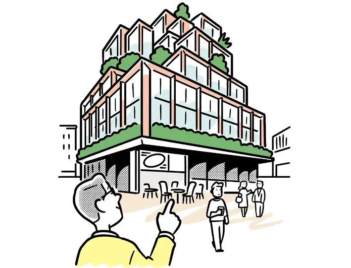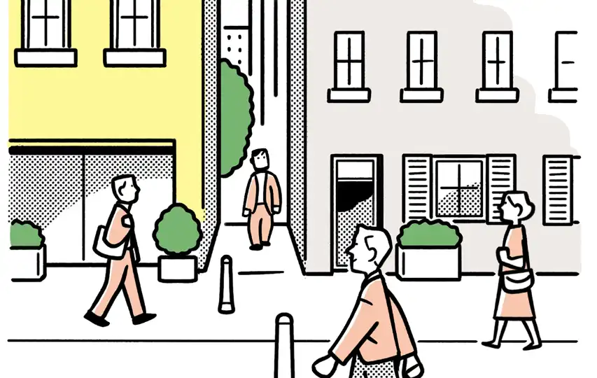 Avoid taking up an entire block with a single, impenetrable structure. Instead, invite public life into the development by shrinking building footprints. Create public spaces and thoroughfares for people to cut through the site, improving pedestrian connections. This will prevent a project becoming a dead zone and better embed it in the city.