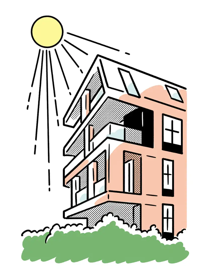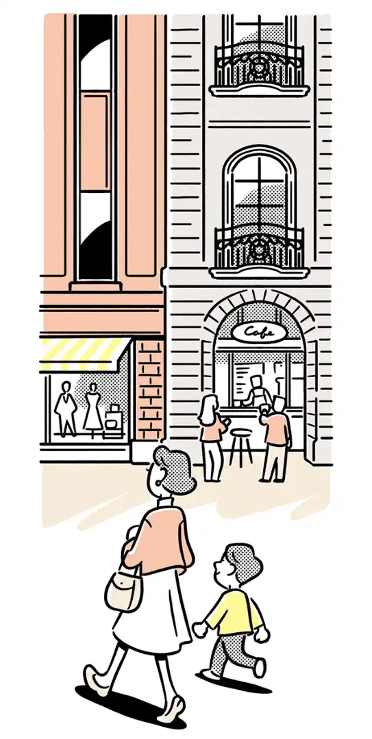 Prioritise the pedestrian experience, so whether tenants are walking to their cars or between home and café, their time outdoors will be uplifting. Provide generous footpaths, an abundance of crossings and traffic-calming measures such as kerb extensions. Where you have to include parking, do so in a discreet underground location.