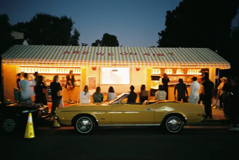“Are We on Air?” says the awning of Kiosk-o-thèque on Hollywood’s Sunset Boulevard. It’s the latest project by Arman Naféei, host of a monthly podcast also called Are We on Air? and founder of creative agency Studio Neu. The kiosk is opposite the Chateau Marmont. Naféei spotted it when he was the hotel’s director of ambiance, a role that tasked him with creating the perfect mood for guests.